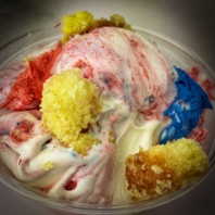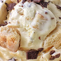 Three scoops of Vanilla Custard, Marshmallow and Butterscotch toppings, and Chocolate Chip Cookie crumbles. Your choice of Pecans or Walnuts, plus, a whole Chocolate Chip Cookie!